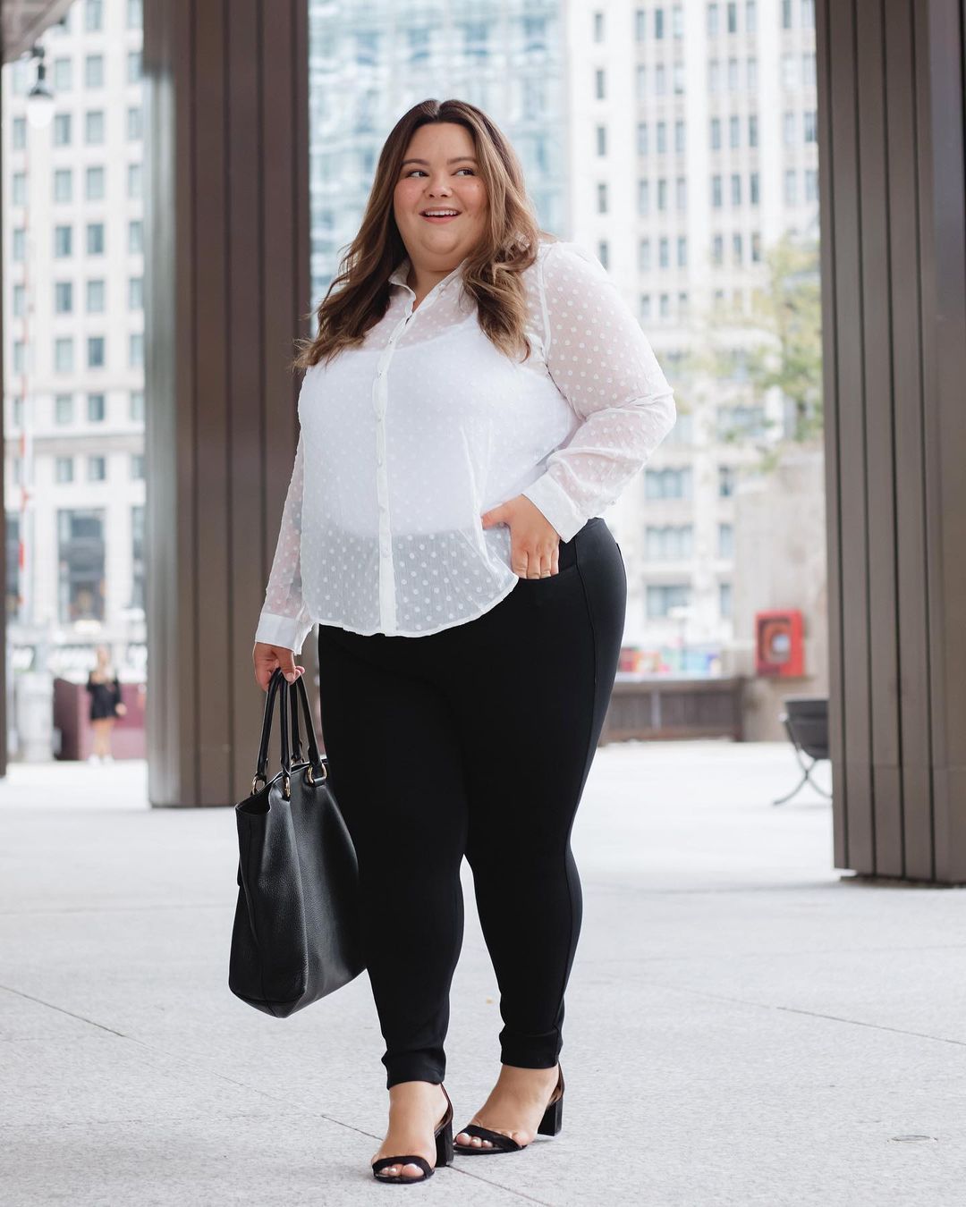 To really elevate the look, try out a white pair of jeans with a black top as shown in the photo below. What makes this look really work is the matching black accessories - the coordinating bag and chunky heels finished with the cute gold hoops make this look classy yet so fun for getting drinks! If you want to make this look more petite-friendly, go for high-rise jeans that are ankle-length.