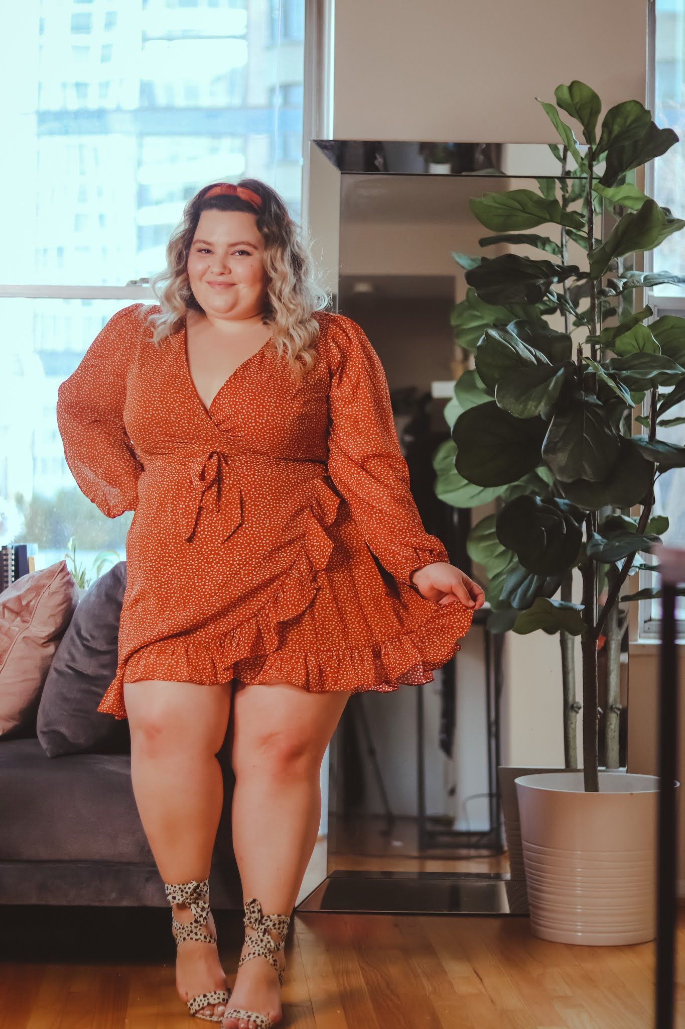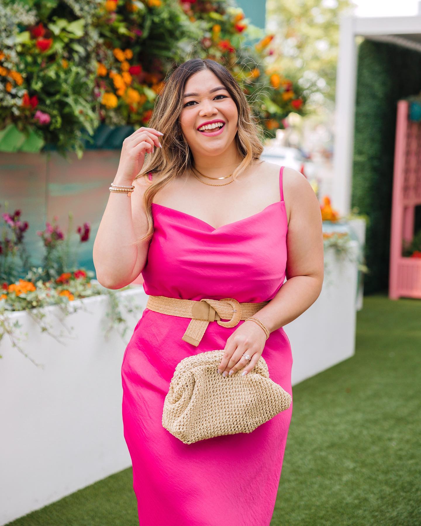 Some petite dress silhouettes to look for are those that flare out from the waist or are detailed on the lower half. Belted options can be great choices as they can create a defined waist along with the illusion of curves! Shoulder-accentuating dresses (like those with puff, ruched, and ruffled sleeves) may not be as flattering on this body type as they naturally add more volume to the top. But if you like a sweet romantic puff sleeve moment, go for it!