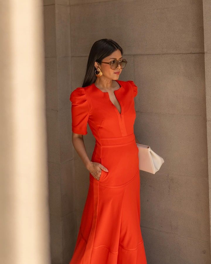 Some petite dress silhouettes to look for are styles that lightly skim the midsection without tightly hugging it, details on the shoulders or neckline, and larger prints, as these can create harmony and proportionality. For this reason, jersey, bodycon, and other clingy styles are not often as complimentary on the petite frame. However, if you want to rock that bodycon, and love this style, do it!