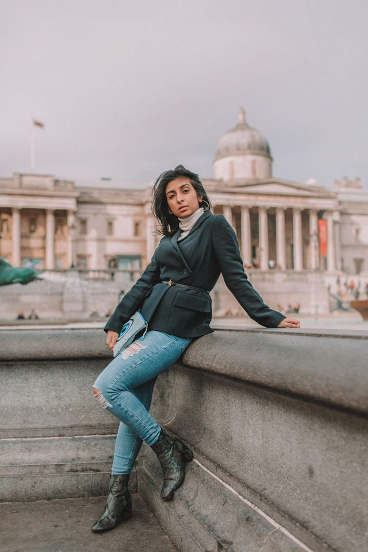 Throw on a peacoat and booties for a completely new and out-of-the-box outfit, great for a night out with friends or that perfect Instagram photo. Stylist tip—I always find it helpful to take pics of my outfits that I love so I remember how I layered each piece!