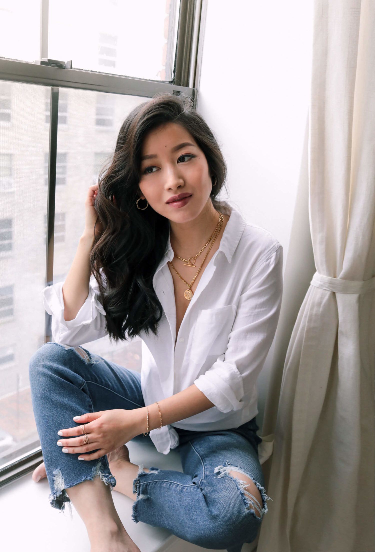 For all the girls that love shiny things and bling, jewelry is the perfect option. As a petite gal if you feel like larger jewelry overtakes your decolletage, then take note! Look for a style that hits the base of your neck around 16’’ in length. You can never go wrong with a dainty necklace, a classic string of pearls, or a delicate bar style. If you prefer a longer style, opt for a charm or pendant style.