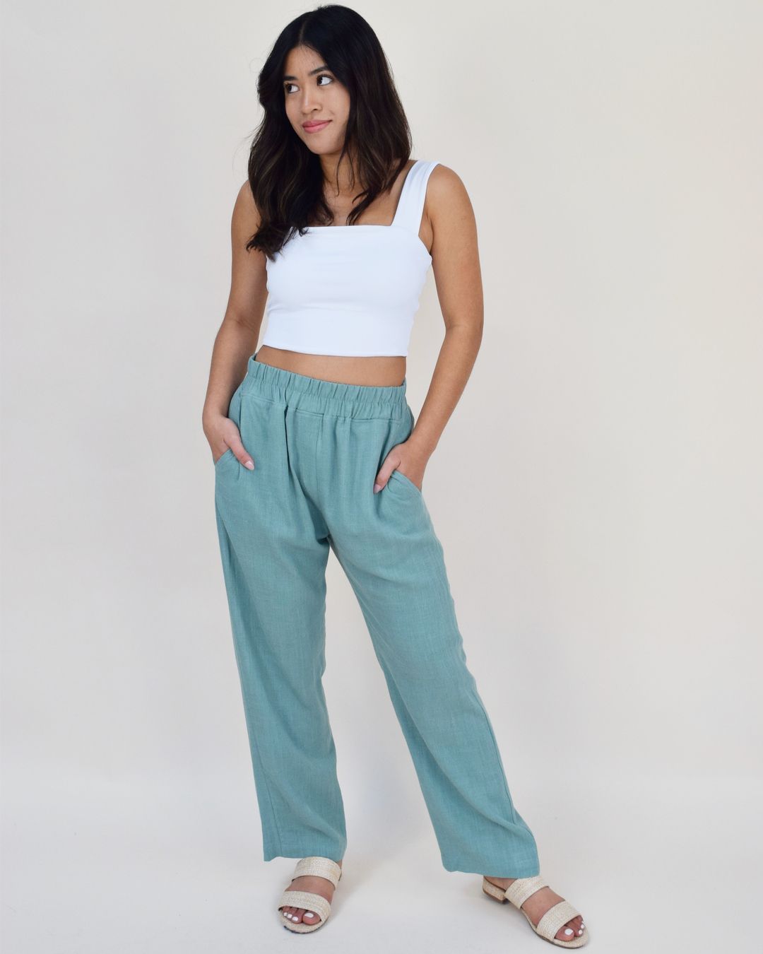 One of the best things about boyfriend jeans is that you have more flexibility with the inseam since they’re styled folded or cuffed. The inseam still matters though! You want boyfriend jeans to hit about 3” above your ankle for the most flattering look. Cropped pants usually look best with a similar length to boyfriend jeans so that the length looks intentional. However, they can still look great a little longer. Plus, cropped pants that flare out at the hem do wonders for balancing out wider hips.