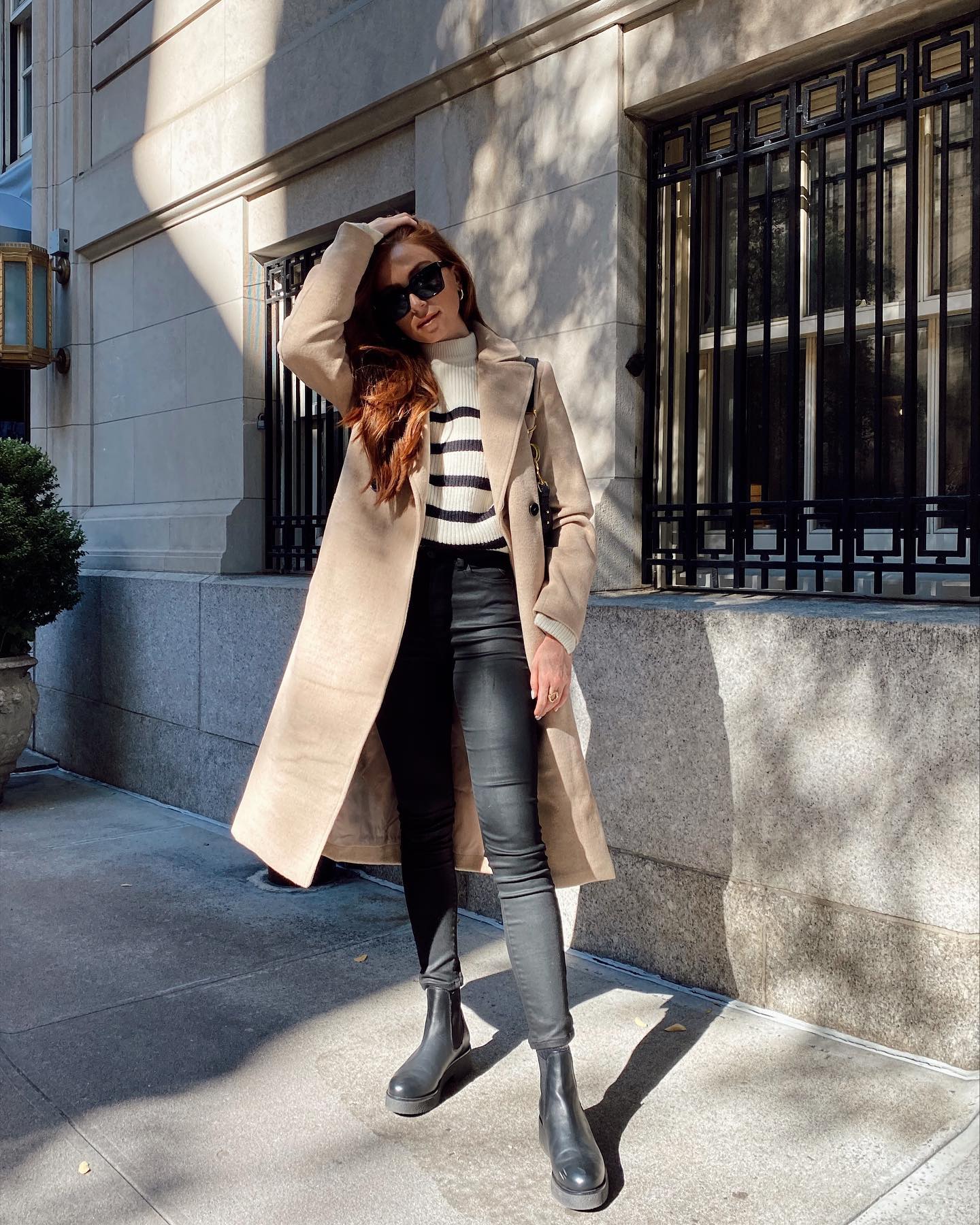 The key is to find one that hits at your hip or slightly above, so it doesn't look too long or bulky on your petite frame. This can be worn with skinny jeans or leggings and a pair of boots for a contrast of shapes or with a skirt or dress for a feminine touch. You can also style a chunky sweater for the office by layering it over a blouse with trousers and mules.