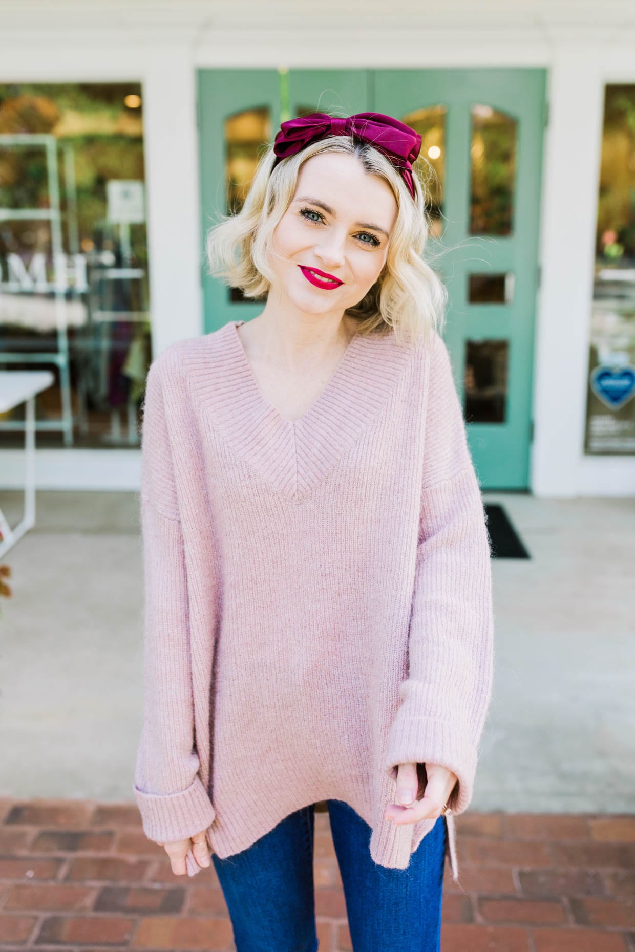 Balance is important when rocking an oversized sweater so pair it with some fitted bottoms or some heels for some contrast and proportion. Fleece leggings and tall boots are a cozy option to keep you warm and stylish!