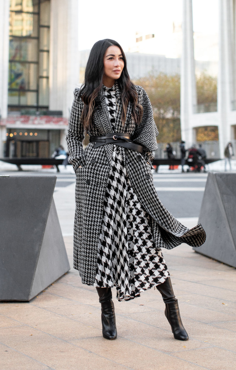Think about throwing over a long dress coat and wearing loafers or heels instead of sneakers to instantly elevate the casual set.