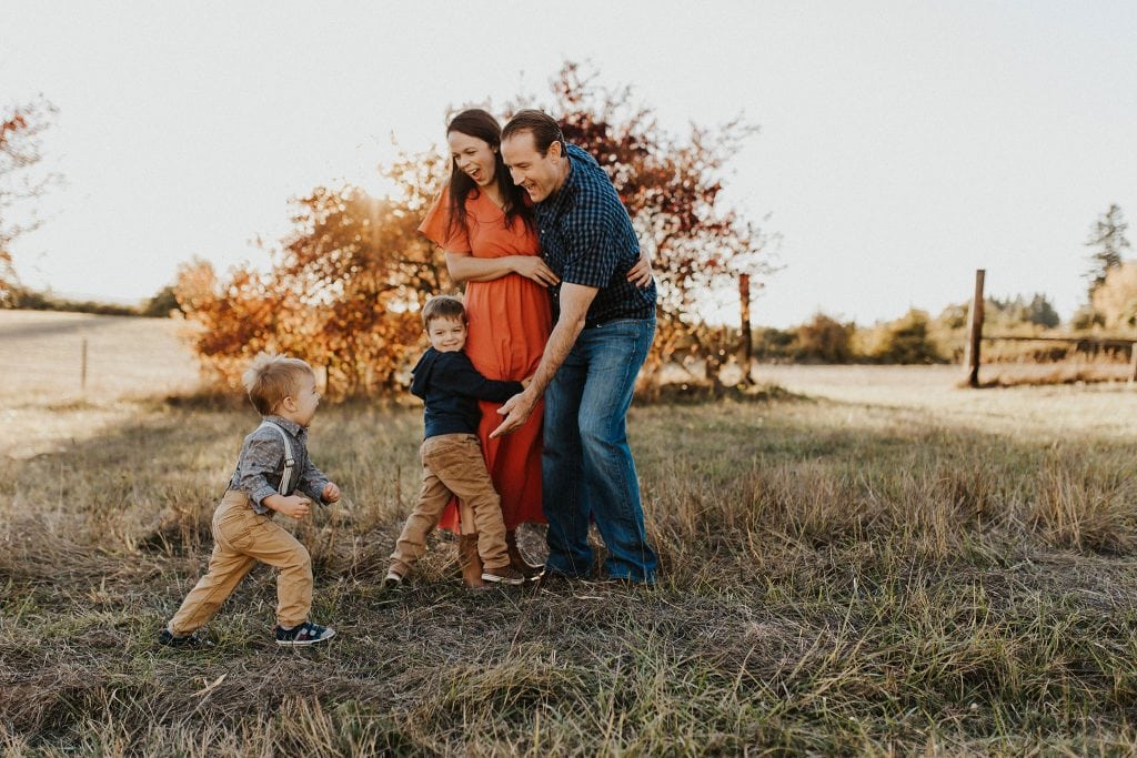 What to do with your hands? Relax them, placing one above your natural waist if you have a long torso; a bit lower than your waist if you have a short torso. Although posing can get great results, candids are really precious to show your family's unique personality!